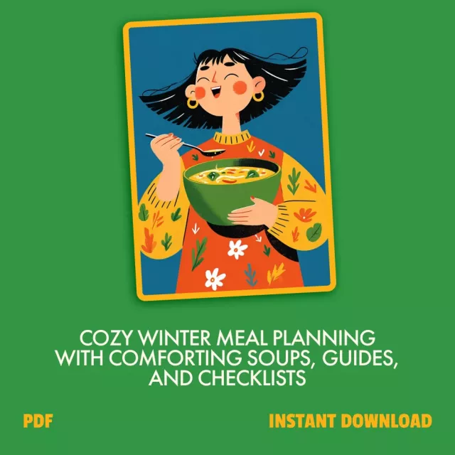 Unlike single recipes or generic planners, this 5-in-1 bundle combines detailed guides, curated soup recipes for winter, and practical checklists in one cohesive collection. It is designed specifically for cold days, helping you build cozy meals with confidence and ease.