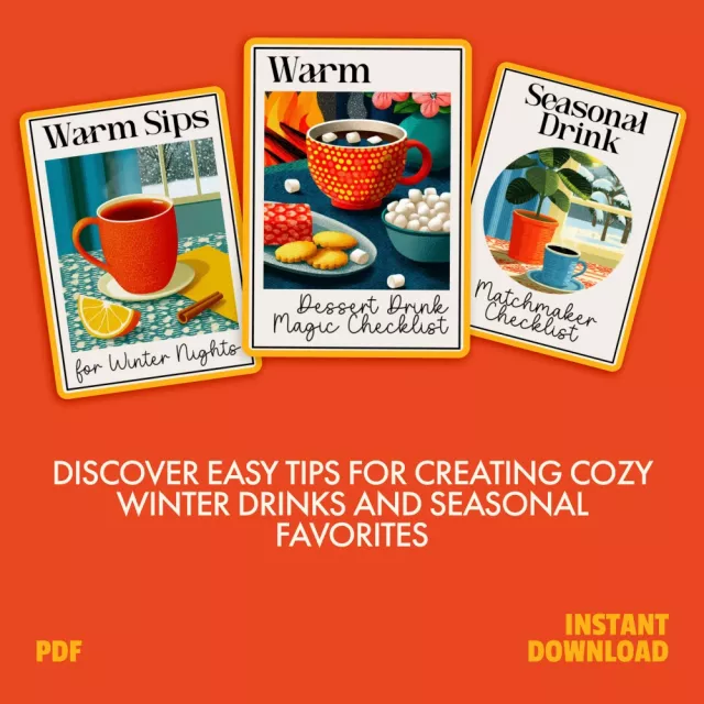 Embrace the warmth and magic of the winter season with the Cozy Winter Sips Menu Bundle. This 3-in-1 bundle of digital downloads is everything you need to create the perfect cozy winter drink menu. Whether you’re hosting a holiday gathering or enjoying a quiet night in, these guides, eBooks, and checklists will inspire your drink creations and ensure every sip is filled with comfort. With easy-to-follow instructions and expert tips, building a cozy winter drink menu has never been so simple and fun!
